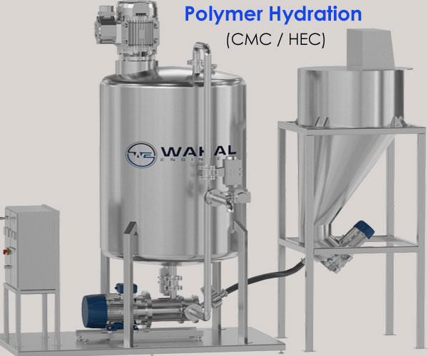 Wahal Liquid Powder Mixers induct polymer powders into a controlled shear zone where each particle is individually wetted before viscosity builds. This prevents surface gel formation around dry cores and ensures uniform hydration.